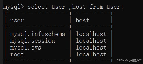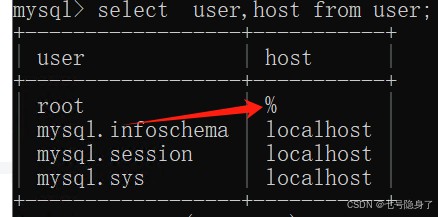 select user,host from user;