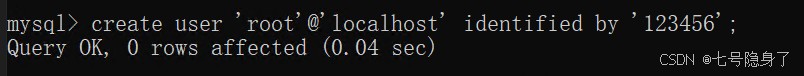 create user 'root'@'localhost' identified by '123456';
