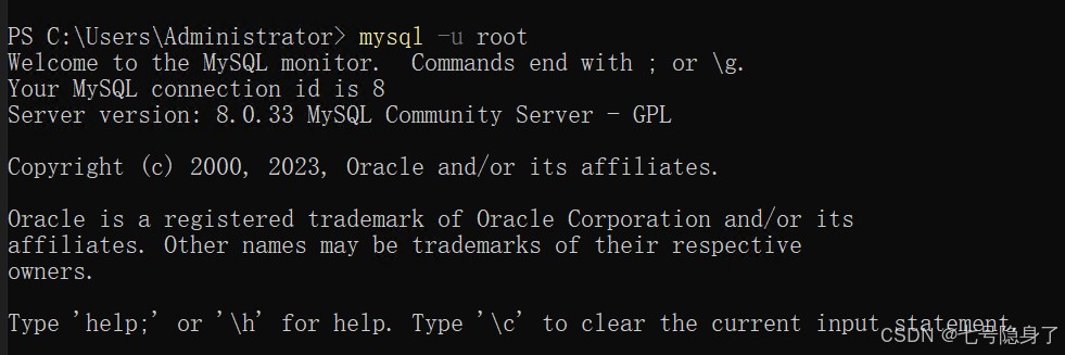 3. 使用mysql -u root 命令直接進(jìn)入mysql中