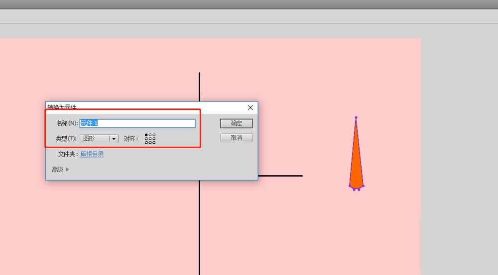 5、拖動(dòng)鼠標(biāo)框選選中箭頭圖形,按F8快捷鍵執(zhí)行轉(zhuǎn)換為元件命令,將這個(gè)箭頭變成一個(gè)圖形元件。