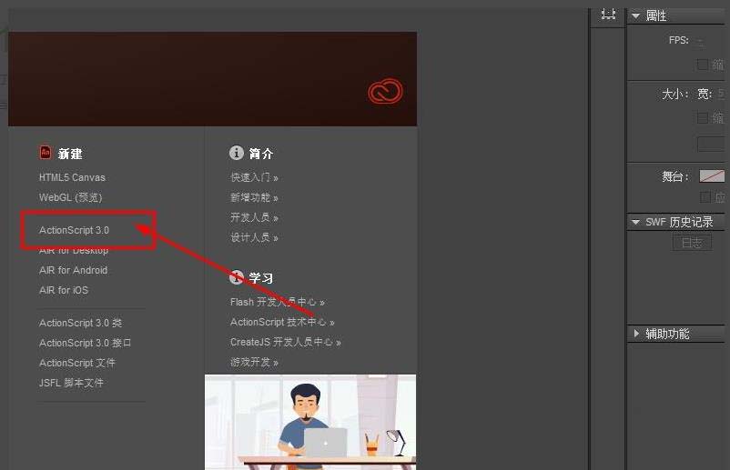 1、打開(kāi)Animate軟件,新建Actionscript3.0文檔。