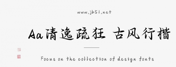 Aa清逸疏狂 古風(fēng)行楷,字體筆觸適中,字形端正,具有很好的視覺感,適合應(yīng)用于藝術(shù)設(shè)計(jì)、平面宣傳設(shè)計(jì)、網(wǎng)頁設(shè)計(jì),書法字帖等領(lǐng)域。有需要的朋友快來本站下載使用吧。