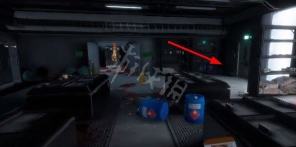 3、來到底部以后,我們使用第一張門禁卡打開下圖標(biāo)記的房門。