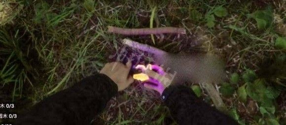1、先去砍伐樹木獲得材料【樹枝】,將樹枝拿在手里可以將其掰成小段。