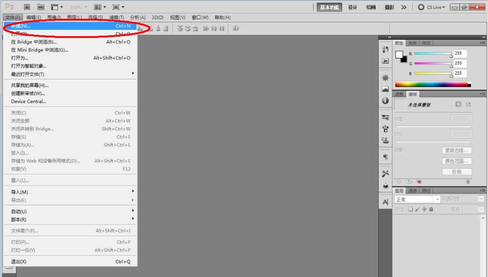 1、打開Photoshop CS5軟件,點擊【文件】-【新建】,按圖示參數(shù)新建一個ps文檔。我們以繪制卡通豬為例。