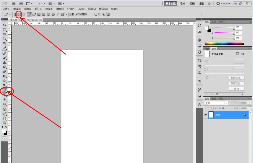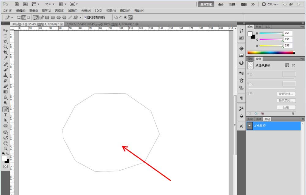 2、點擊【鋼筆工具】,點擊左上角的【路徑】圖標(biāo),按圖示使用鼠標(biāo)在作圖區(qū)域繪制出多個線段圖案(如圖所示);