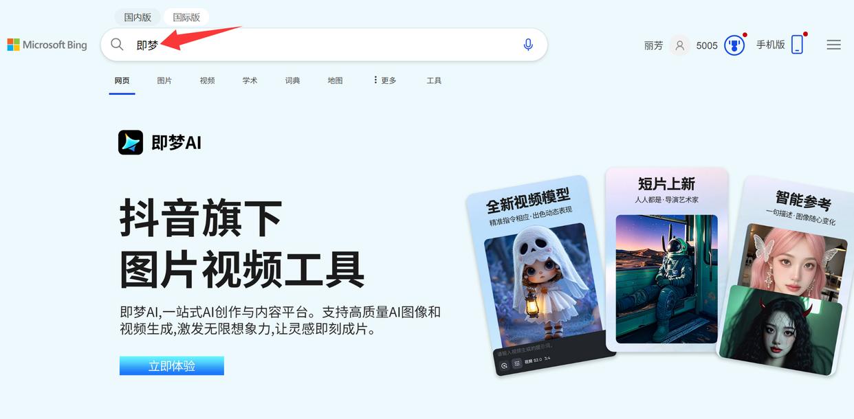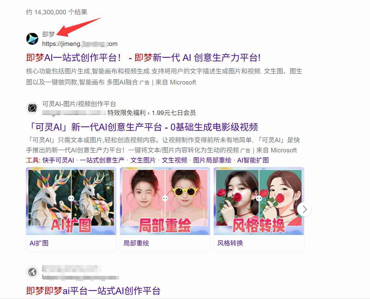 在搜索引擎上搜索【即夢(mèng)】,在搜索結(jié)果中找到官網(wǎng)鏈接,點(diǎn)擊進(jìn)入。