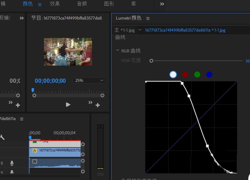 3、在顏色面板中找到“曲線”調(diào)節(jié)曲線為“S型”