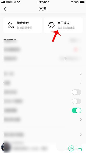 3、進(jìn)入QQ音樂菜單后,點(diǎn)擊“親子模式”。