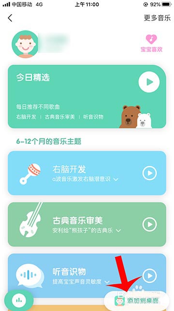 6、生成寶寶音樂成長(zhǎng)包后,點(diǎn)擊“添加到桌面”。