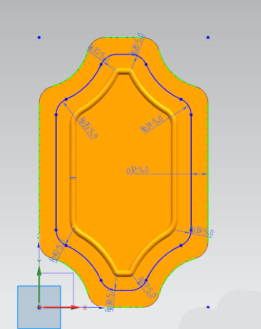 11、如下圖所示,雙擊編輯掃掠路徑的草圖,將偏置改成5,將過渡的圓角全部設(shè)置為5,點擊完成,退出草圖。