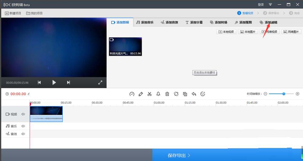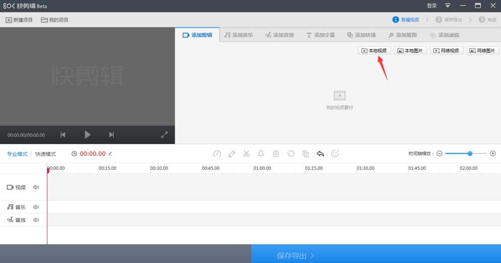 在快剪輯窗口中,點(diǎn)擊本地視頻
