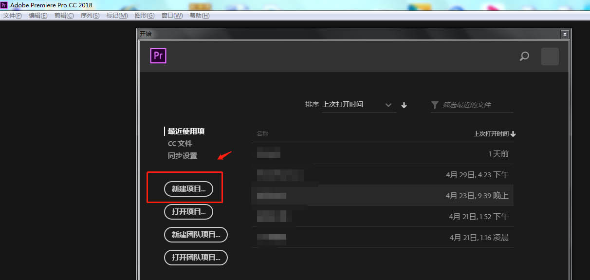 1、首先在電腦中打開PR軟件,點擊新建項目,創(chuàng)建一個視頻剪輯項目。