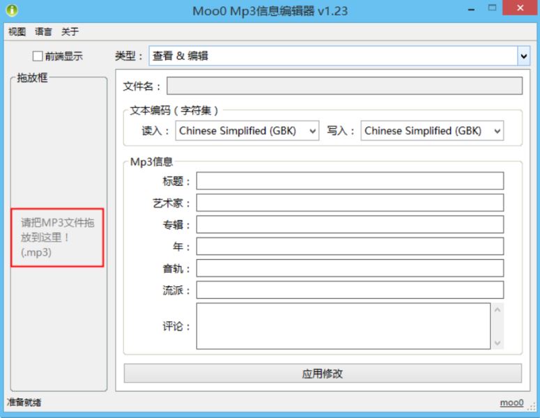 Moo0 Mp3信息編輯器 v1.19 綠色多語版 音頻處理 / 1.1MB