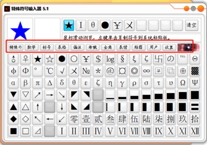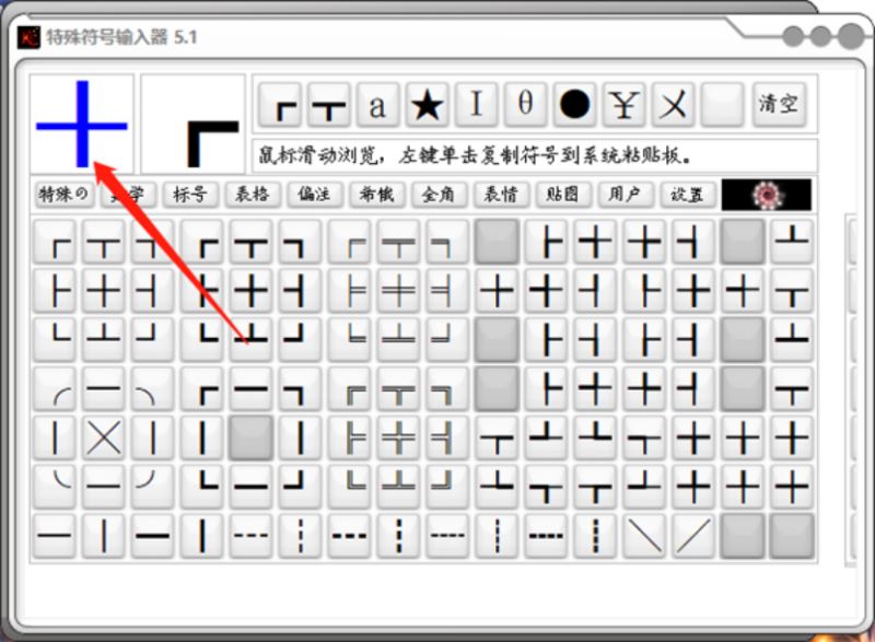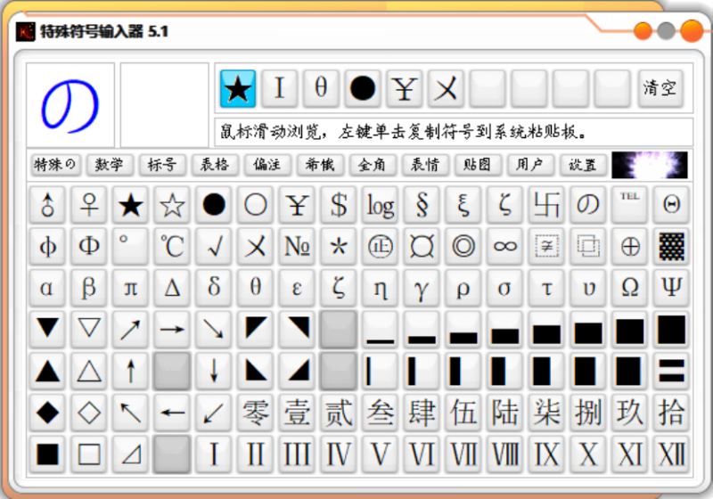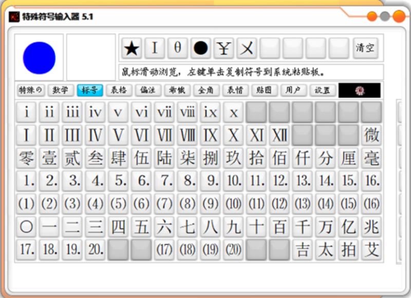 3、軟件提供了海量的特殊符號(hào),包括數(shù)字、標(biāo)號(hào)、表格、偏注、全角等等。