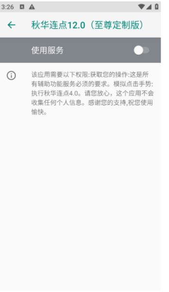 3、不同于其他同類軟件,秋華連點器無需獲取設備的Root權限即可運行,極大地降低了使用門檻,并確保了系統(tǒng)的安全性。