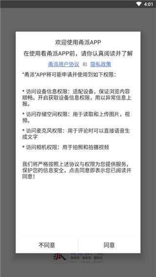 1、在本站下載甬派新聞app后打開并同意協(xié)議。