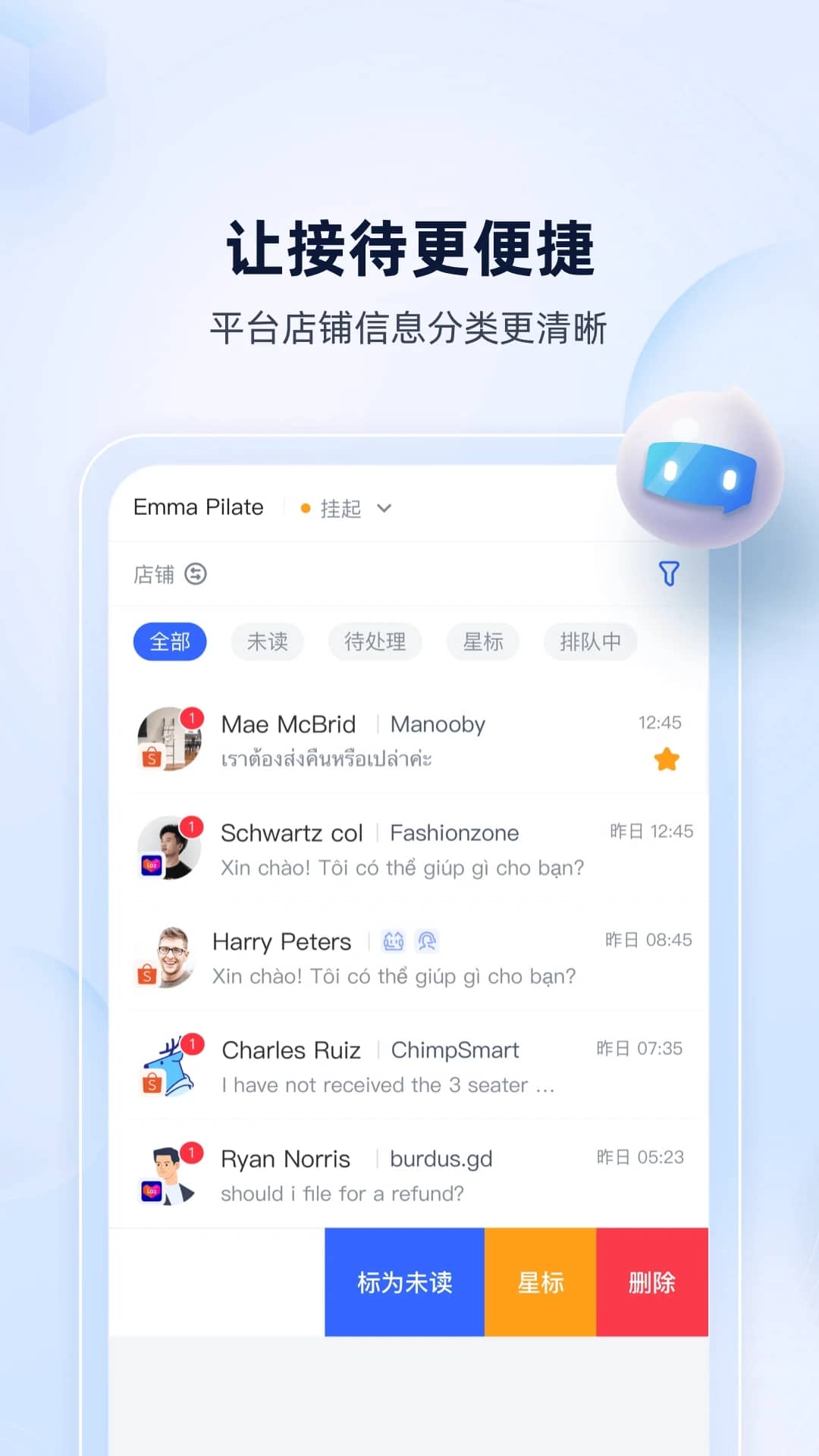 - 輕松管理多店鋪:多店聚合、多客服管理,支持買家星標(biāo),黑名單、自動(dòng)翻譯等;